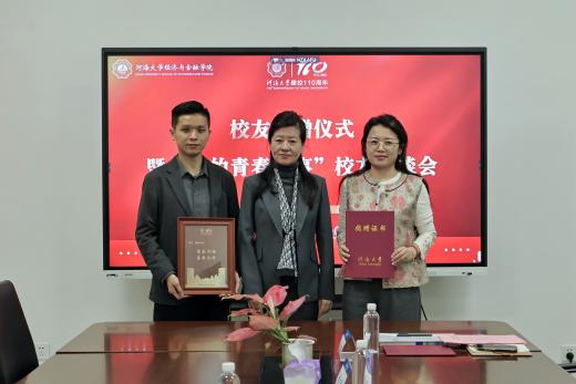 李娜书记向田苗、蒋涵、张秋禹校友颁发捐赠证书、捐赠牌。并向校友们反哺母校的行为致以衷心感谢。她讲到:广大校友的关注与支持是学校和学院发展的重要动力,而学院是校友最坚实的后盾。学院将进一步优化拔尖创新人才培养,为行业输送更多高素质复合型人才,在对接国家需求、服务社会中不断推动校友与学院、校友与校友间形成紧密的支撑体系,凝聚校友情谊,共促学院与个人实现更好发展。