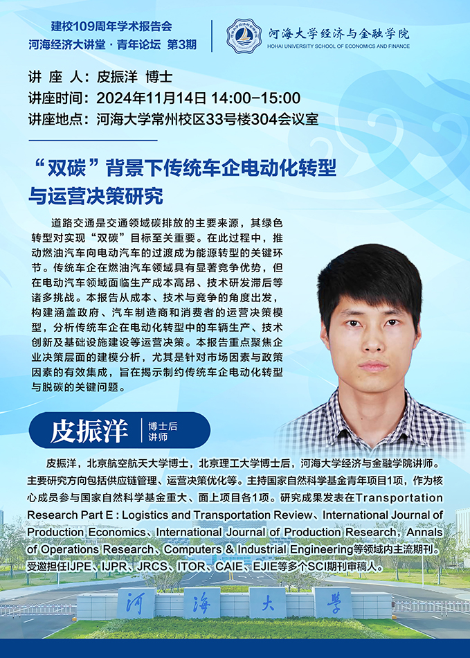 各学院:根据第十一届能源经济学术创意大赛工作安排,现将第十一届能源经济学术创意大赛有关事项通知如下:一、赛事简介第十一届全国大学生能源经济学术创意大赛(China National College Students Competition on Energy Economics,以下简称“大赛”)由中国优选法统筹法与经济数学研究会主办,旨在培养适应新时代能源经济发展的高素质创新人才,同时积极响应中国“2030年前碳达峰、2060年前碳中和”战略目标。自2015年创办以来,大赛已成功举办十届,吸引了全国数百所高校的广泛参与,凭借其权威性、专业性和实践性,成为全国大学生展示学术能力和创新成果的重要平台。2023年3月,大赛正式被列入中国高等教育学会发布的《全国普通高校大学生竞赛排行榜》。二、重要时间节点(1)报名时间:2024年10月14日—11月17日报名系统://energy.qibebt.ac.cn/eneco/contribution/(注:唯一报名渠道)(2)作品提交时间:2025年2月24日—3月9日提交系统://energy.qibebt.ac.cn/en