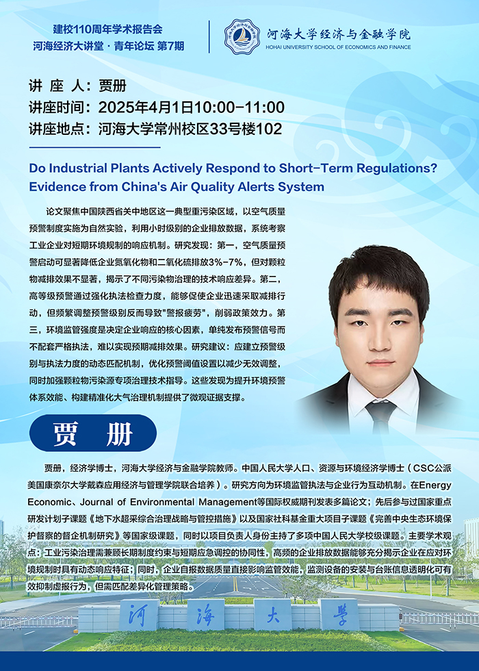 举办河海经济校友讲堂第5期《挖掘中国特色水治理故事:从社会实践到论文发表》。本期河海经济校友讲堂邀请学院2019届校友姜明栋担任主讲人。姜明栋校友结合本科期间参与学院牵头开展的河长制主题社会实践、学术研究、科研竞赛活动为例,与同学们分享自身对协同推进“实践-科研-竞赛”的思考。姜明栋以太湖蓝藻治理为例,剖析河长制从地方试点到全国推广的实践成效,强调其在破解“九龙治水”难题中的制度创新价值。他重点介绍了杏吧